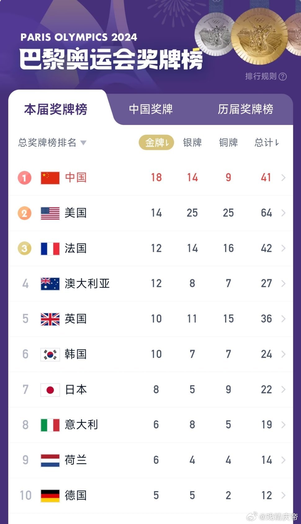 最新消息下的奥运会奖牌排名